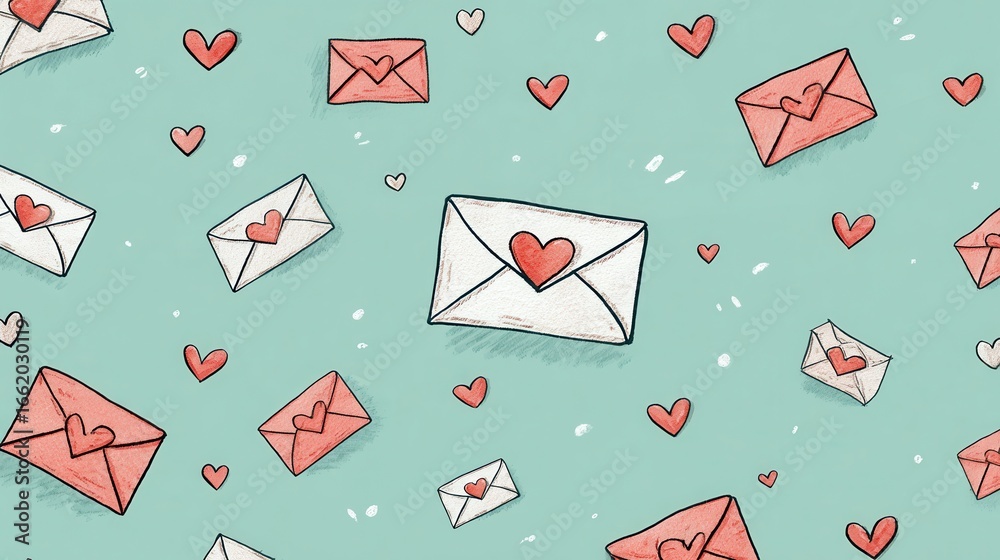 • Affection envelopes pattern on trendy mint background : Customer Loyalty & Digital Marketing