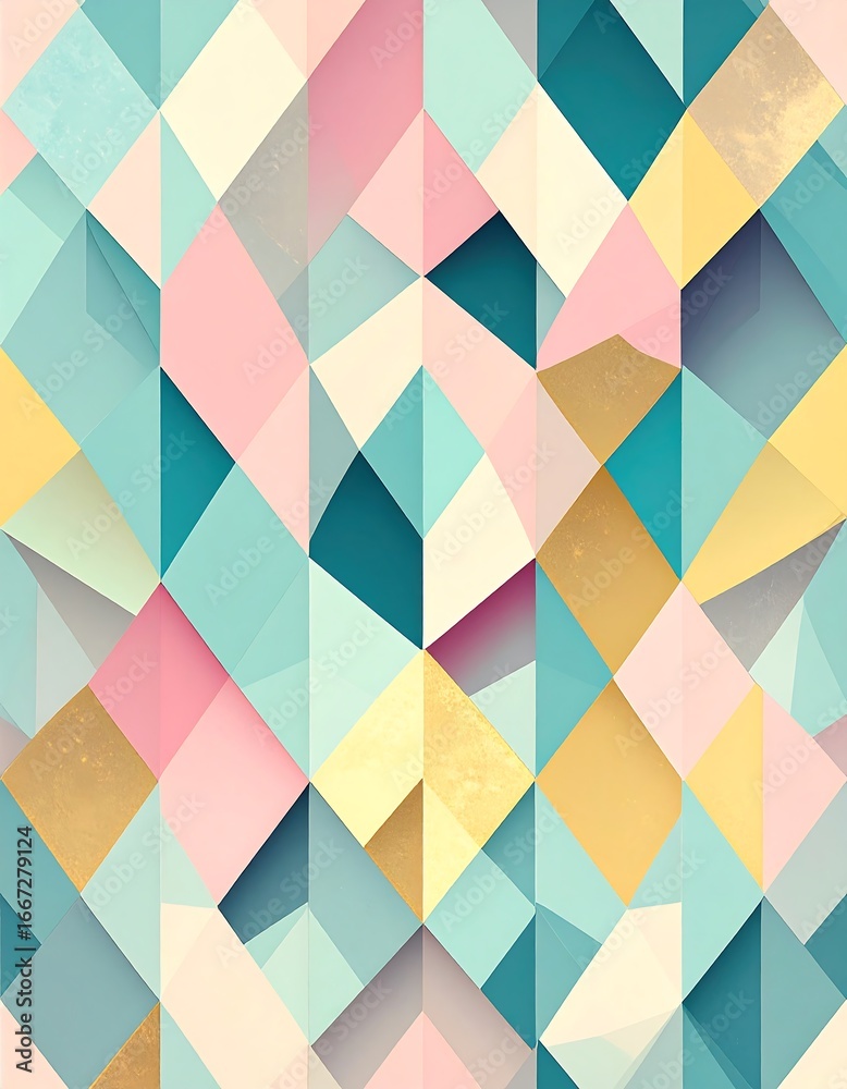 Obrazy Turkus - Abstract geometric pattern with pastel colors and gold accents #1667279124