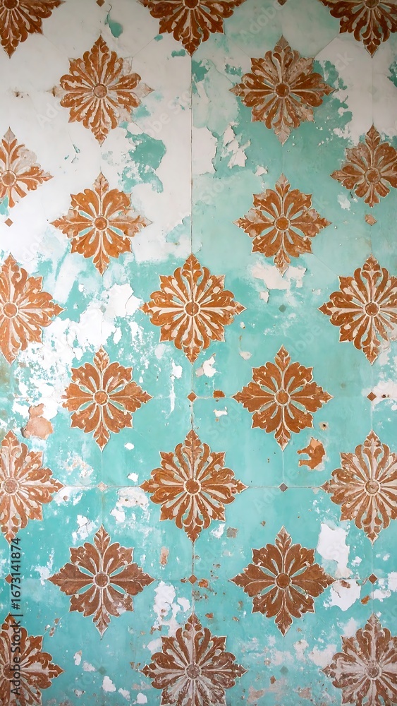 Obrazy Turkus - Faded floral pattern on a wall #1673141874