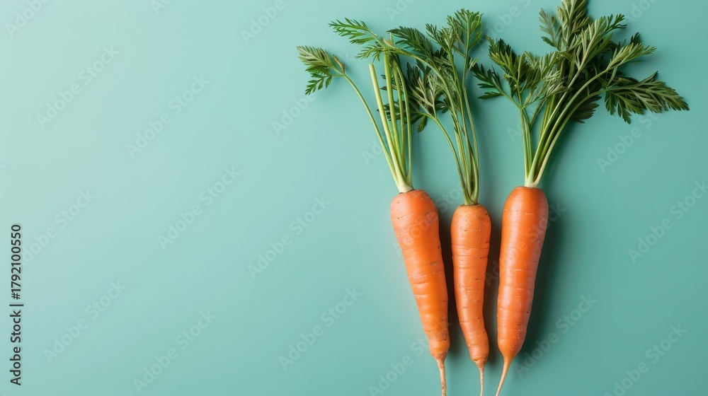 Obrazy Turkus - Artistic composition featuring carrots arranged in a geometric pattern on a minimalistic background. #1792100550