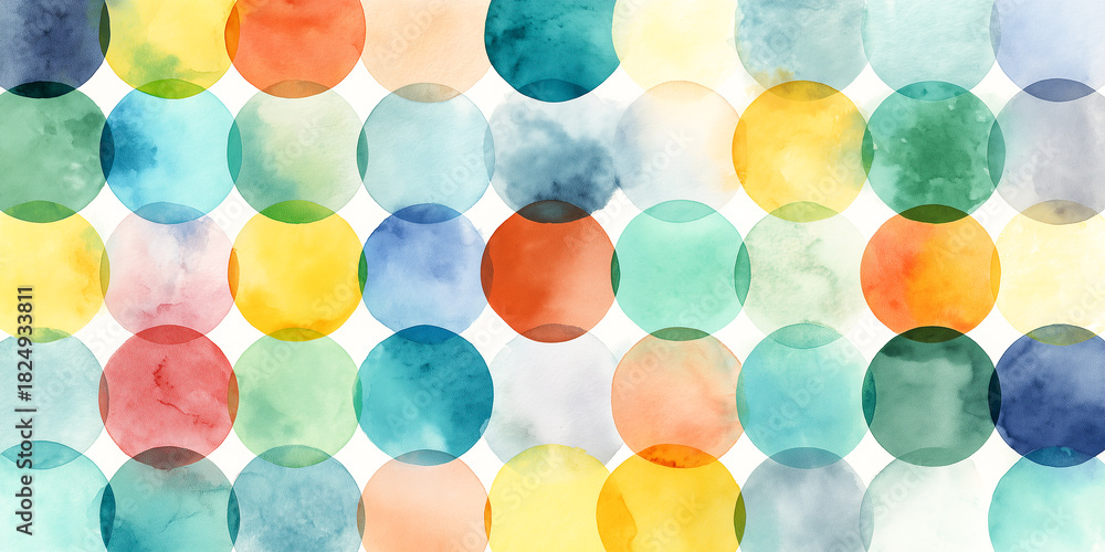 • watercolor circular pattern with soft transparent gradients arranged in a harmonious grid layout viewed from above