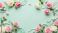 • Ornate floral frame with pink and white roses, pearls, and damask patterns on a soft mint green background