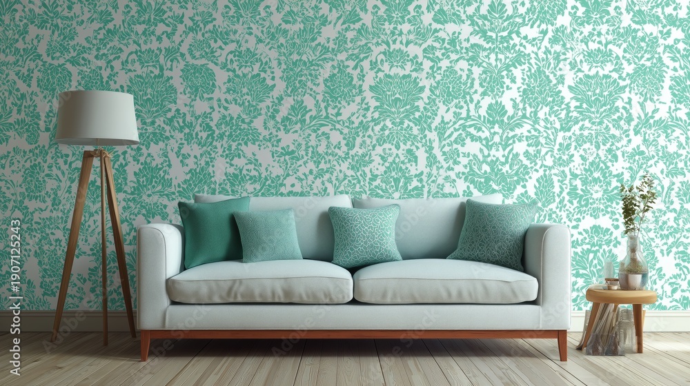 • elegant jade green damask pattern on white background classic luxury decor