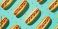 • Hot dog pattern soft pale color background. Top Flat lay view