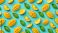 • Vibrant diagonal pattern of ripe mango slices on a fresh mint blue background, evoking tropical vibes, healthy eating, and fashion, perfect for posters and wallpapers.