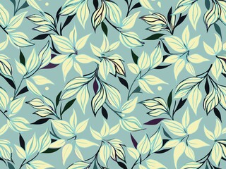 Obraz Seamless floral pattern with abstract leaves and flowers. allover watercolor background. Celadon. IllustrationDopasuj i kup