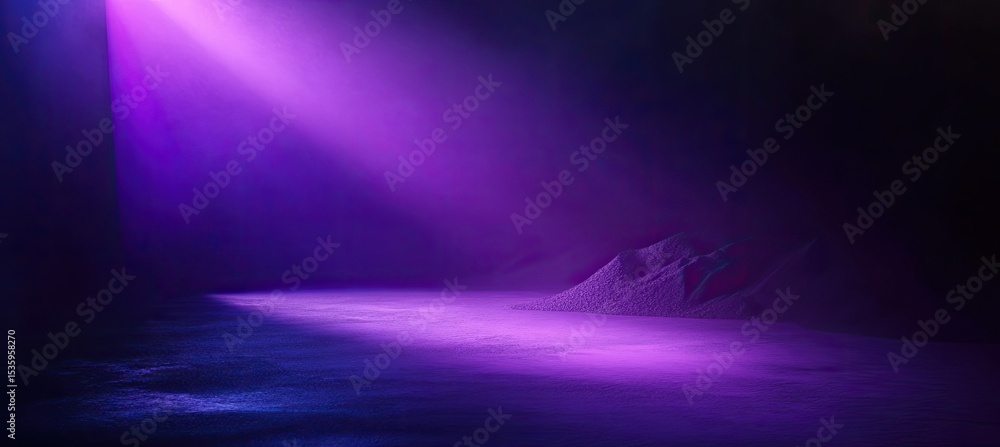 • Dark, dramatic scene lit by a single, powerful, purple spotlight