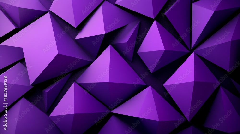 • Vibrant Purple Geometric Abstraction Featuring Triangular Polygons and Pyramidal Elements in 3D