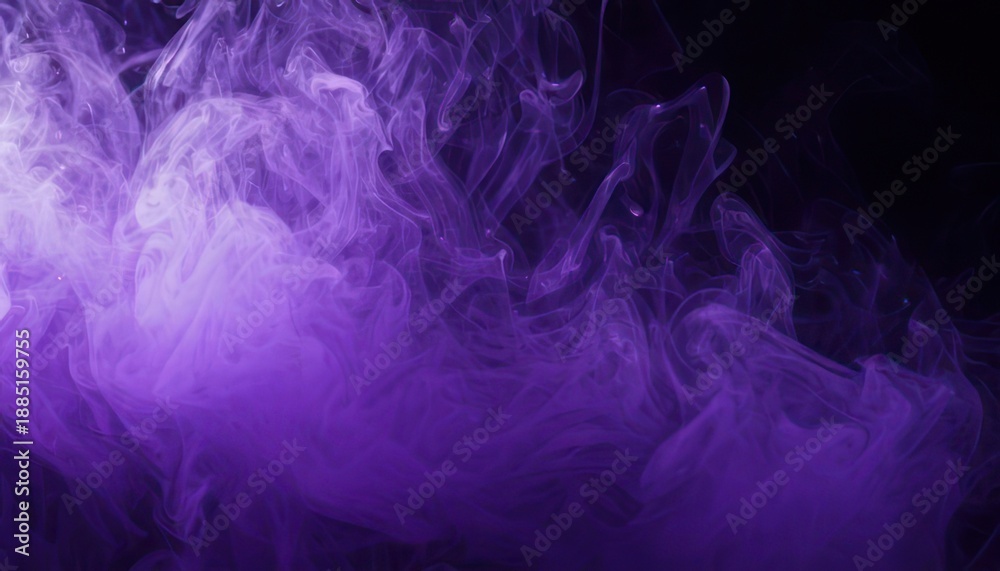 • Ethereal purple smoke swirls against a dark backdrop, creating a mesmerizing visual effect.