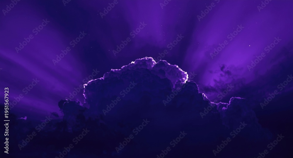 • Dark purple cloud formation with radiant violet light creating an ethereal mood
