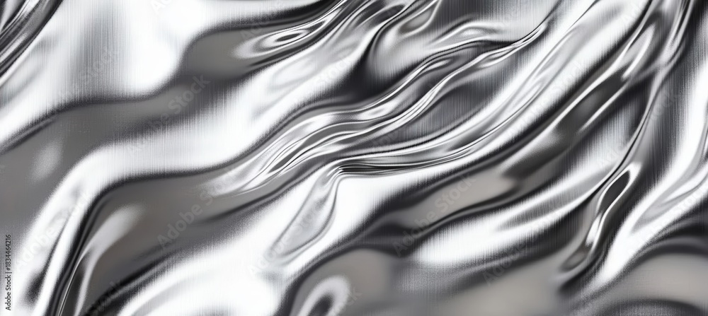 • Elegant Silver Metal Sheet Unfurling with Abstract Chrome Reflection for Modern Design Backgrounds