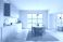Obrazy Owoce - Bright minimalist interior kitchen and dining area with wooden furniture, large windows and... #1963178802