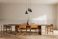 Obrazy Owoce - Minimalist wooden dining interior featuring long table, modern chairs, pendant lights and calm... #1964184486