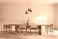 • Minimalist wooden dining interior featuring long table, modern chairs, pendant lights and calm neutral space in contemporary design architecture concept. 3D Rendering