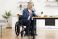 • Mature man in wheelchair using laptop for online payment with bank card inside modern home setting. Concept of accessibility, financial independence, and modern technology for everyday transactions.