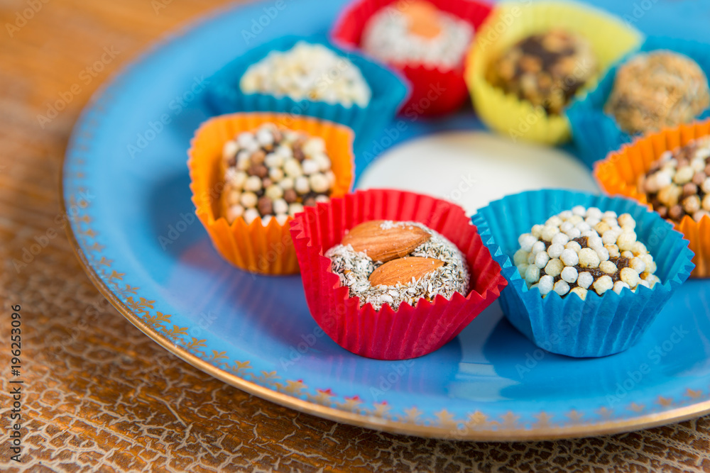 Obrazy Słodycze - oriental dried fruits with nuts, Turkish sweets on a plate #196253096