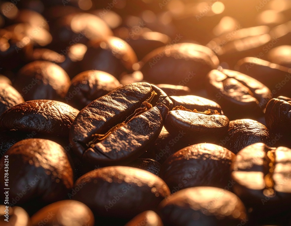 Obrazy Kawa - Ziarna kawy oświetlone ciepłym światłem #1678436214