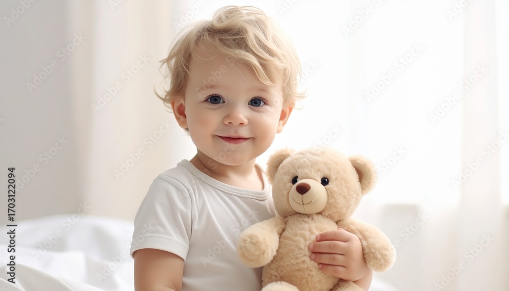 Obrazy Kawa - テディーベアを抱っこするかわいい子供 #1703122094