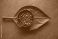 • Ziarna kawy w miseczce na tle ozdobnej tacy w kształcie liścia Coffee beans in a bowl on a decorative leaf-shaped tray