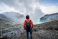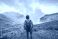 • Young travler looking crater blue lake at Kawah Ijen, Indonesia