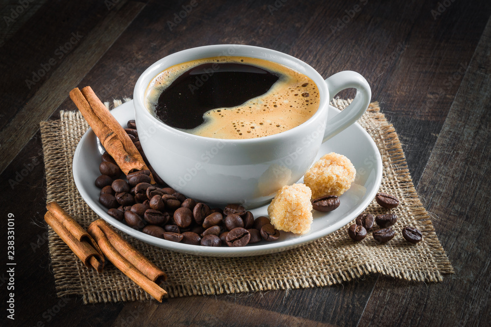Obrazy Kawa - coffee, coffee beans, spices, star anise, cinnamon, sugar, canvas #238331019