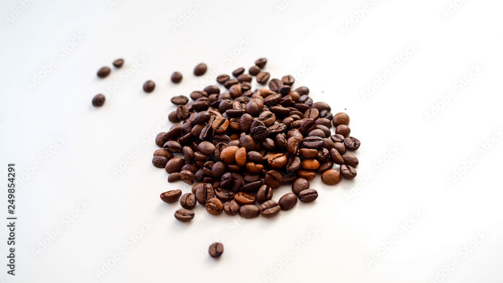 Obrazy Kawa - Ziarna kawy gotowe do zmielenia leżące na białym tle #249854291