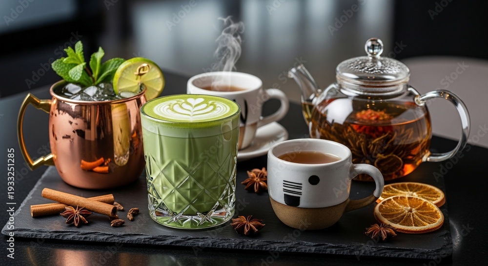 Obrazy Alkohol - Assorted beverages on black surface #1933251285