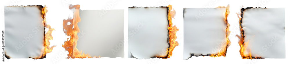 Obrazy Sport - PNG Burning paper edges sequence, element set on transparent background #1695090567