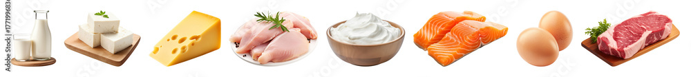 Obrazy Sport - PNG Assorted protein-rich food items, element set on transparent background #1771996836