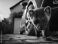 • Zbliżenie na młodą kunę, która wyłania się spod zderzaka ciemnego samochodu. Stoi na brukowanym podjeździe. Niskie, jasne słońce.