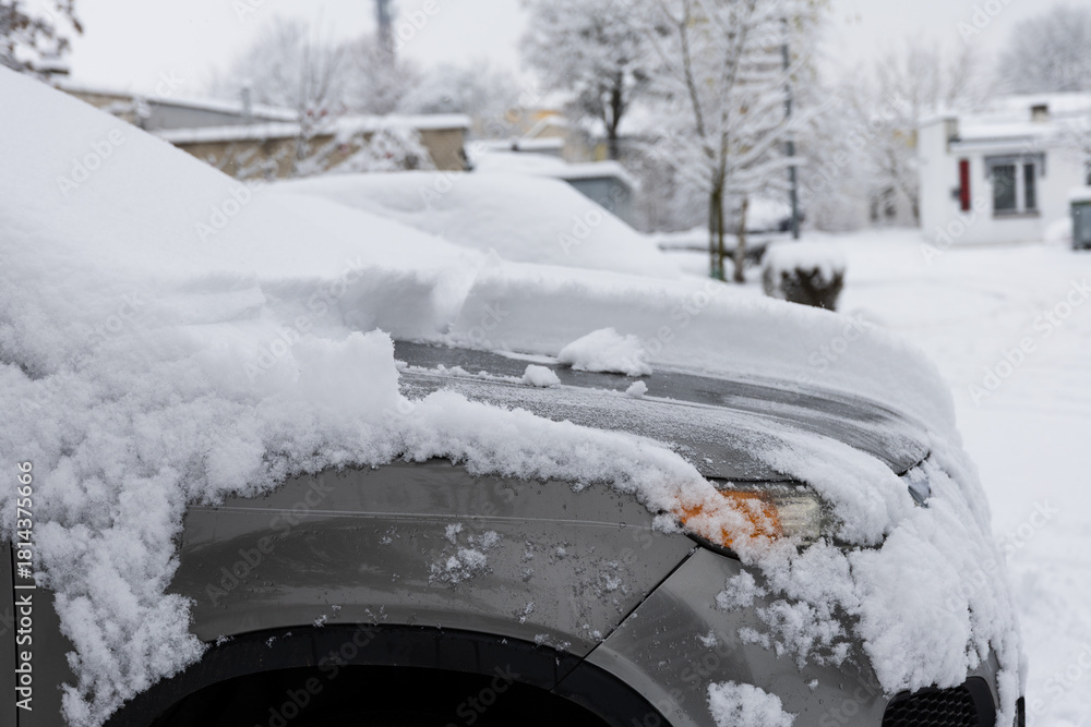 Obrazy Auta - częściowo odśnieżony samochód zimą. #1814375666