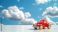 Obrazy Auta - Czerwony samochód zabawkowy stoi na białym stole. Obrazek przedstawia scenę z Dnia Dziecka.... #808375953