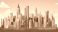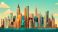 • Colorful cartoon of new york city skyline with statue of liberty for urban design