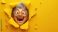 Obrazy dla Dzieci - A crazy laughing grandma looks through a hole in a yellow wall, smiling, cartoon illustration #707317977