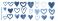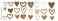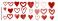 • Set of red hearts isolated on transparent background.