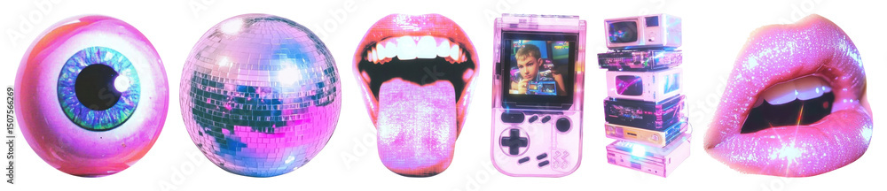 • PNG Retro vibrant pop art collage, element set on transparent background