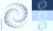 • Collection of colorful halftone spiral patterns representing diverse renewable energy sources. Vector geometric set of vortex dots for eco-branding and sustainability.