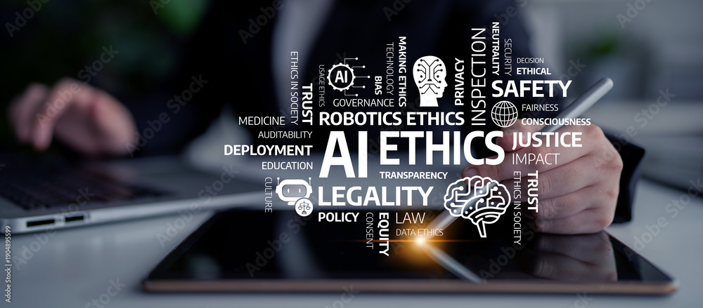 Obrazy Miasto - This image showcases the key concepts surrounding artificial intelligence ethics, highlighting... #1904895599