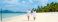 • Koh Mook a young couple of caucasian men and Thai Asian woman walking at the beach in Thailand