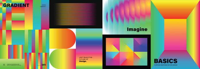 Obraz Modern gradient poster background vector set. Minimalist cover template with vibrant perspective geometric prism shapes in motion. Ideal design for social media, cover, banner, flyer.Dopasuj i kup