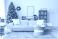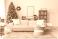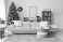 • Interior of light living room with sofa, bookshelf and Christmas tree