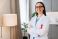 • Doctor wearing pink ribbon raising breast cancer awareness