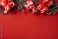 • Vibrant red background with evergreen branches and festive gifts wrapped in ribbons creates a warm holiday mood, perfect for Christmas and New Year celebrations and seasonal greetings