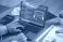• Businessman using AI chatbot interface on laptop for digital contact center support chatbot technology assisting