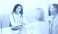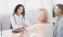 • General Practitioner. Mexican woman physician and senior couple patients handshaking at doctor's office, copy space