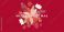 • Merry Christmas greeting card, banner, poster, cover. Modern beautiful Xmas art design with hand drawn Poinsettia flowers, holly berries, fir branches, snowflakes pattern and typography.