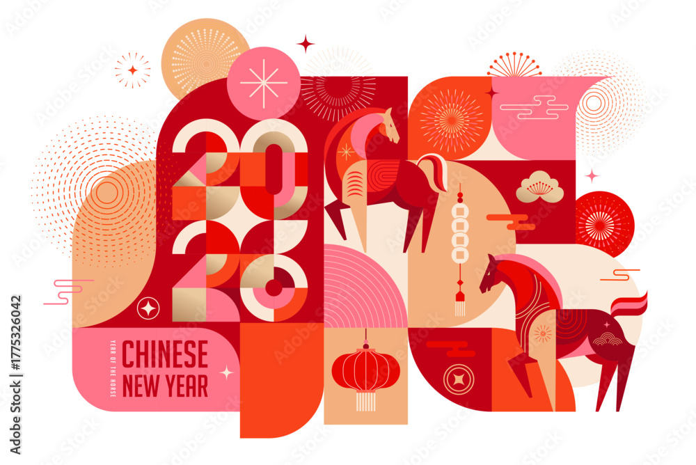 Obrazy Niebo - Modern geometric banner for Chinese New Year 2026 - Year of the Horse #1775326042