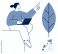 Business growth, environment, teamwork, leadership, sustainability, creativity. Minimalist illustration of a person with a laptop pointing upward and a leaf. Business growth and environment conveyed od 0,00 zł Dopasuj i kup
