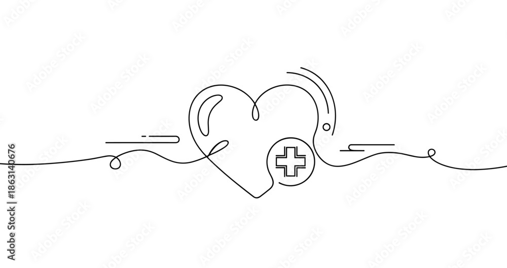 Continuous line heart design with medical cross symbol, no editable stroke od 0,00 zł Dopasuj i kup