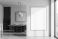 Obrazy Niebo - Modern dining room interior with large blank poster mockup on clean white wall, featuring wooden... #1923687129